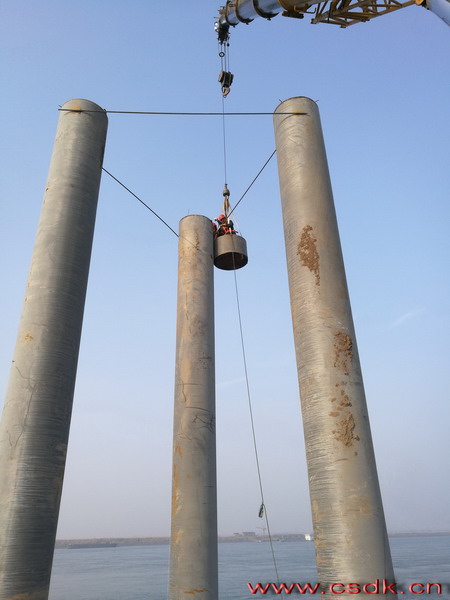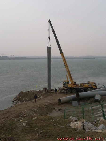 在預(yù)報最冷的冬天,湖南航務(wù)公司給了我們長沙大秦一個深情的擁抱,讓我們參與在岳陽長江邊安裝浮動船塢定位樁。
